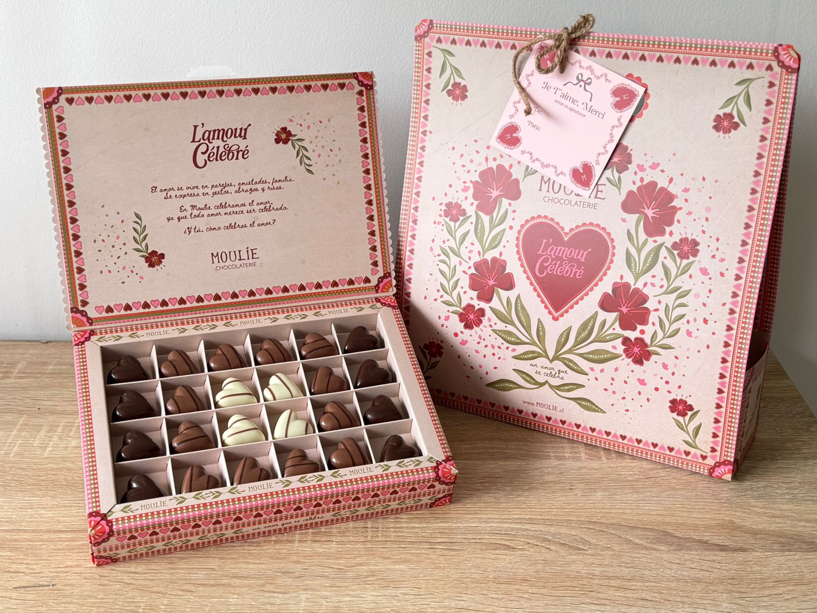 Selección de chocolates Belgas de Moulie chocolatería, ideales para regalar y acompañar flores.